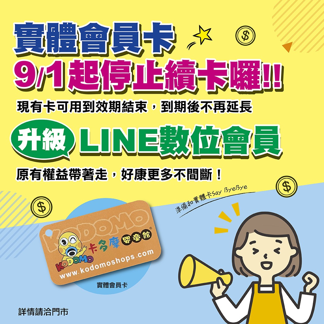 為提升服務品質與便利性,卡多摩嬰童館已全面導入 LINE 數位會員制度,並將自 2025 年 9 月 1 日起停止實體會員卡續約。